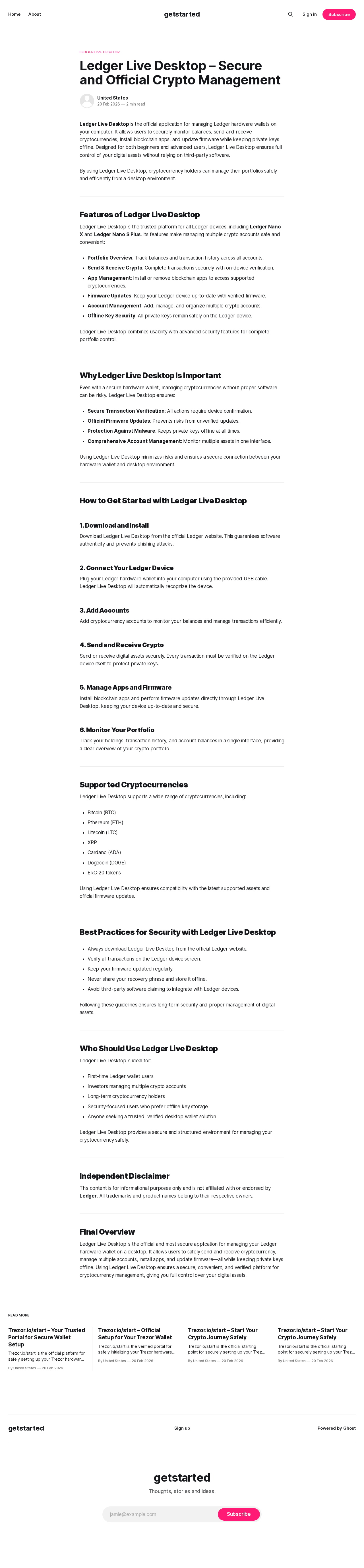 The site is clearly attempting to impersonate Ledger Live branding on a non-official domain. The page title explicitly references Ledger Live and Official Ledger Wallet, while the canonical and content originate from ghost.io infrastructure, a significantly different domain from Ledger. The presence of a recent Let's Encrypt certificate and multiple external script assets loading SPA components suggests a crafted phishing surface designed to harvest credentials or sensitive information. Immediate suspension of the domain and blocking of hosting or DNS propagation is warranted; this site demonstrates deliberate brand impersonation and credential harvesting risk.