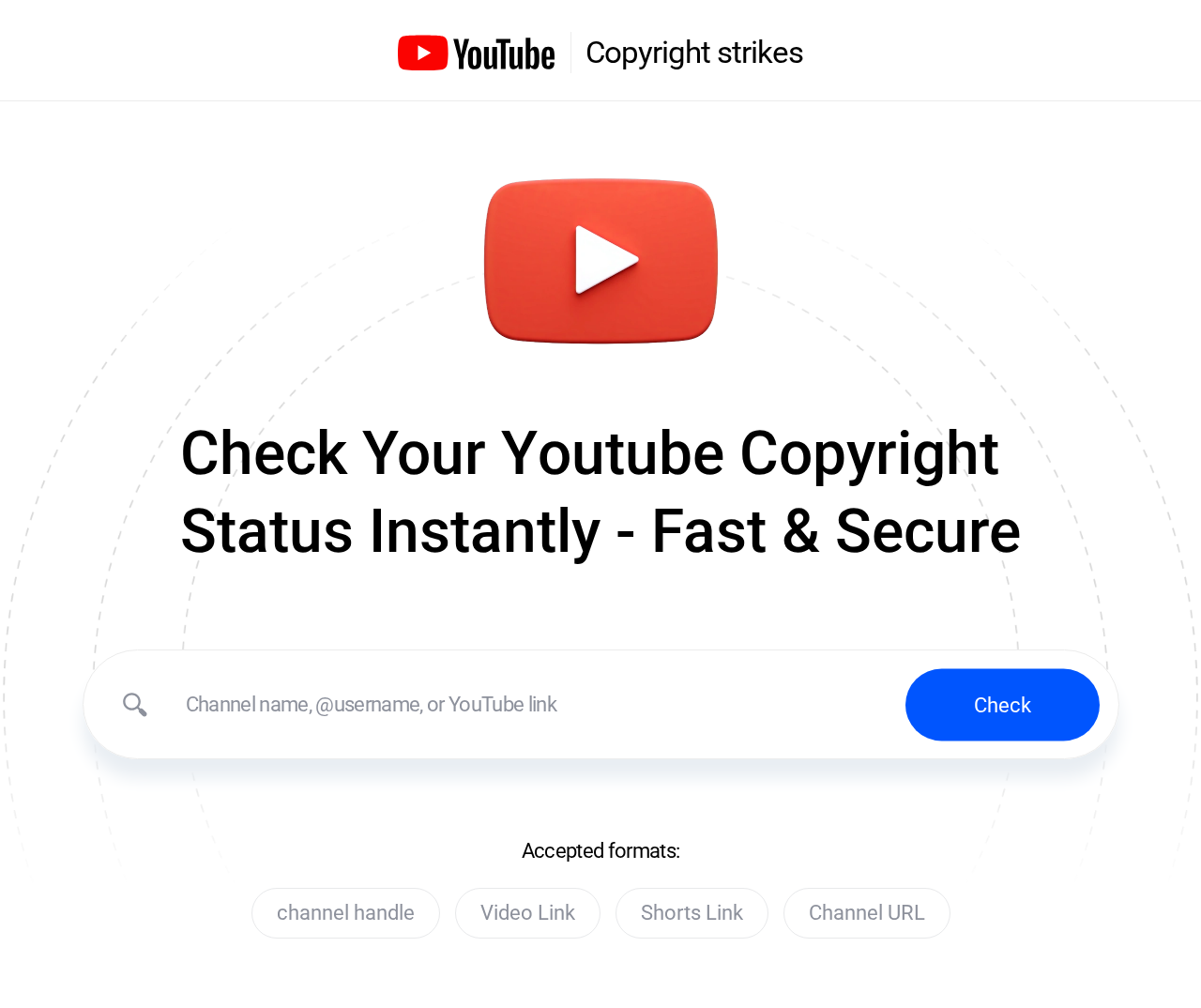 The page presents YouTube branding in the screenshot (YouTube logo and wording) suggesting impersonation of YouTube. The domain Google is a very new domain (1 day old) and hosts a SPA-like page that appears to clone a YouTube-themed interface for copyright/status checks. There is no direct credential harvesting visible in static HTML, but dynamic JavaScript renders forms; observed POST endpoints to /cdn-cgi/rum and /api/log-visit indicate data collection. The domain does not appear to be the official YouTube domain, signaling potential phishing/brand impersonation based on the visual cues and domain mismatch.